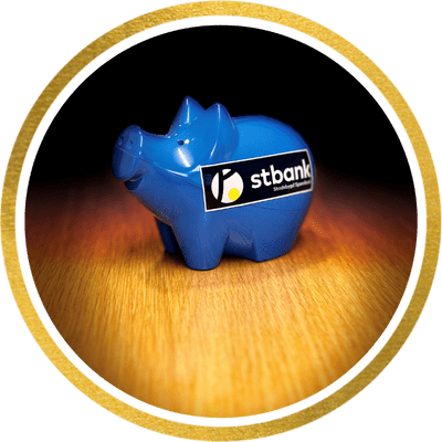 - du må ta med deg sparebøssen din og så teller vi opp pengene og setter det inn på sparekontoen din i stbank!