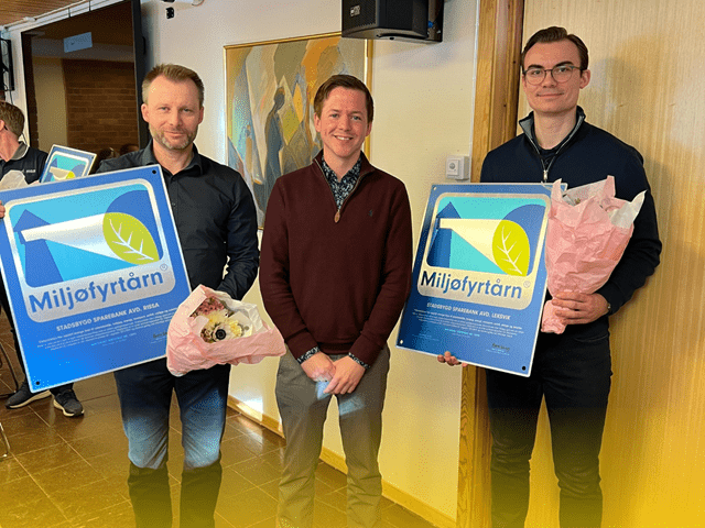 Høsten 2021 ble Stadsbygd Sparebank godkjent som en Miljøfyrtårn-bedrift. Og på kommunestyremøtet i Rissa Rådhus torsdag 31. mars fikk banken ved bærekraftansvarlig Johan Kårli og Sondre Pedersen overrekt det synlige beviset på at vi er sertifisert av ordfører Bjørnar Buhaug i Indre Fosen kommune.